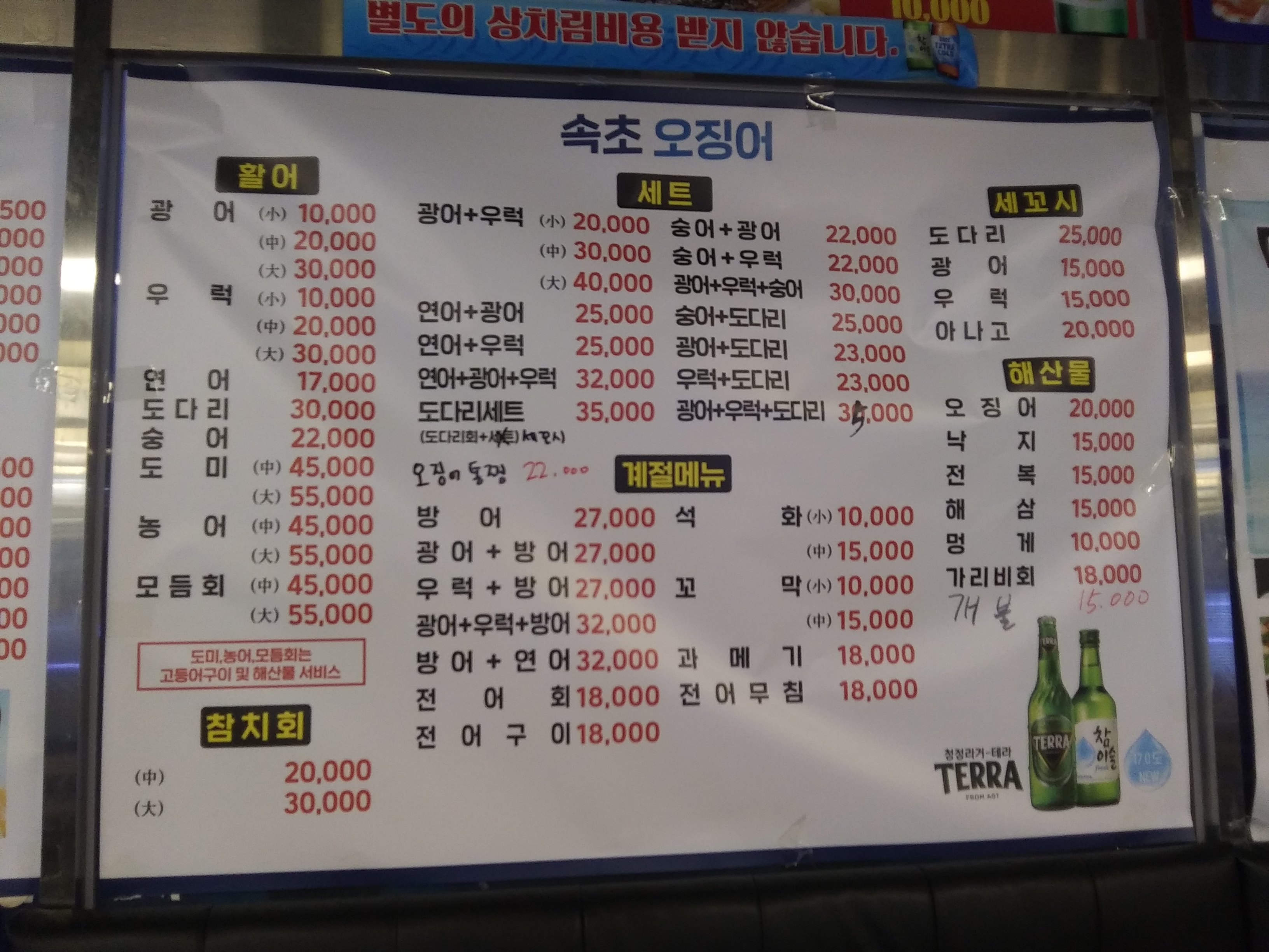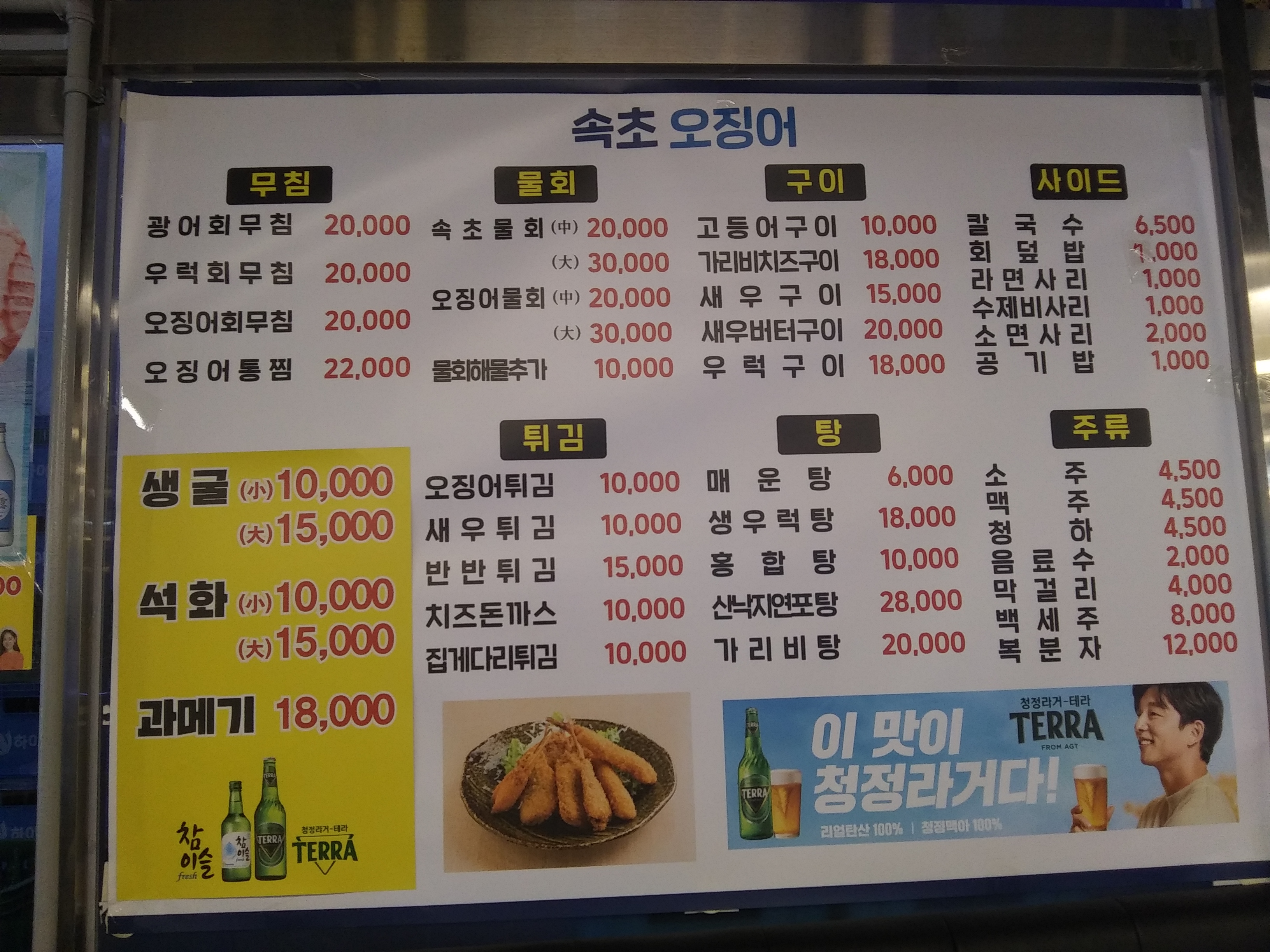 먹자골목으로 조금만 들어오면 1분도 채 안 돼서 왼쪽에 '속초 오징어 어시장'이라는 간판이 눈에 들어옵니다.
