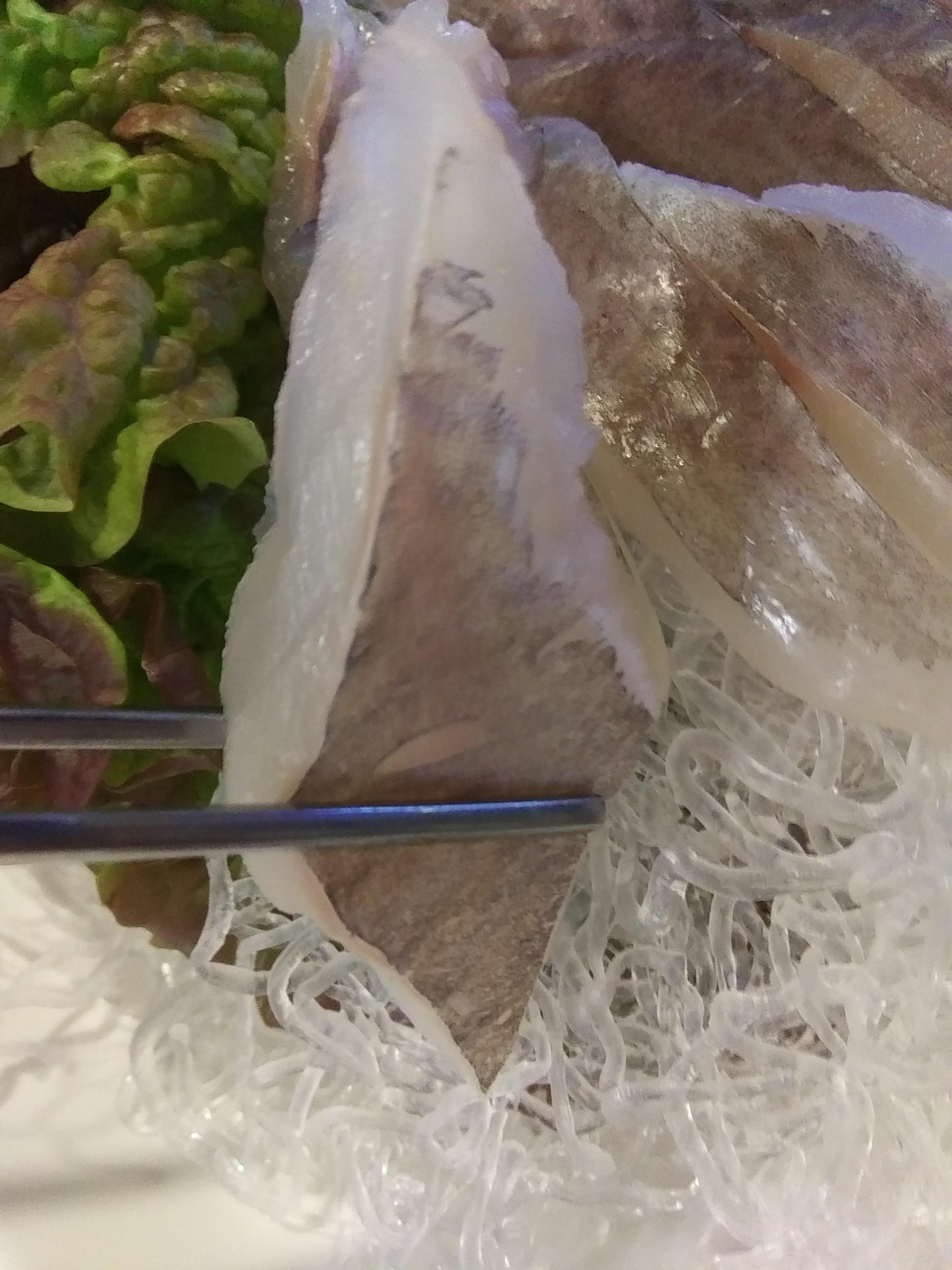 횟집에서 추가 사리로 파는 수제비가 어떤 건지 다들 아시죠? 전 이 수제비 사리를 개인적으로 안 좋아합니다. 오래 익혀도 잘 안 익어서 소화도 잘 안 되고, 식감이 별로고 맛도 없습니다. 그런데 맛 없다는 것을 잊어 버리고, 또 수제비 사리를 시켰네요. ㅎㅎ 먹으면서 라면이나 소면 사리를 시킬 걸 하고 후회했습니다.
